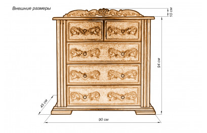 Комод из серии Грета 6 ящиков (сосна, резьба береза)
