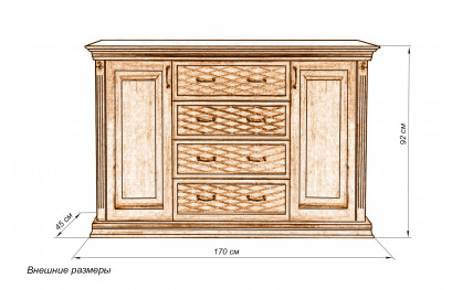 Комод Флоренция - 4 ящика (фальшь 8 ящ.)