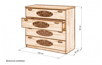 Комод из серии Грета ящики с дверкой (сосна,резьба береза)