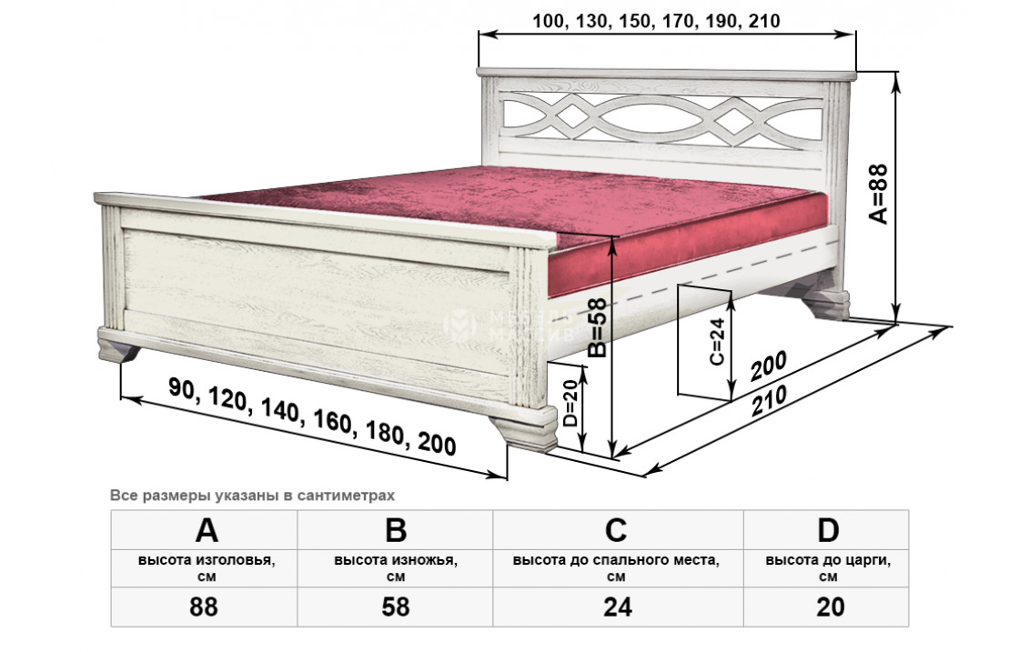 При всей своей простоте кровать Лира отличается редкой изысканностью. Сплошное изножье прекрасно контрастирует с украшенным фигурными элементами изголовьем. При этом обе спинки изделия плавно переходят в устойчивые ножки. Купить представленную модель по выгодной цене можно в нашем интернет-магазине. Осуществляется доставка на дом по Дзержинску и Нижегородской области .| Размер | Цена | |