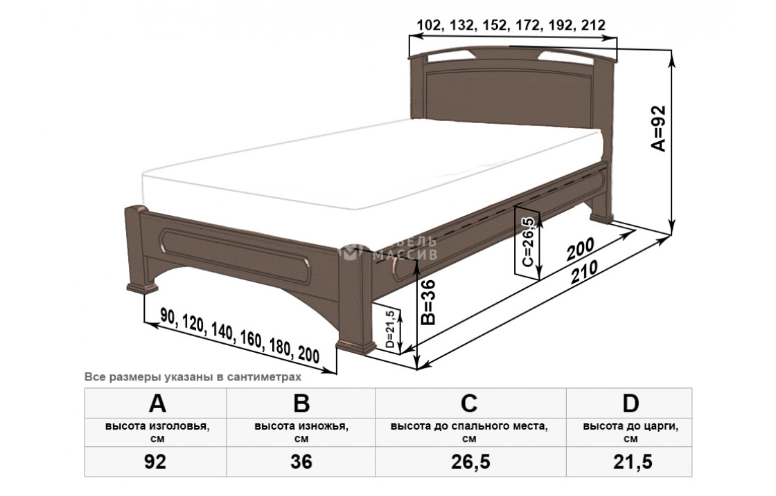 Прочная кровать Лаура сделана из экологически чистого древесного массива. Модель имеет чуть изогнутое изголовье с двумя продолговатыми отверстиями и крепкий каркас с устойчивыми ножками. Изделие, которое можно купить по выгодной цене в нашем интернет-магазине, представлено в различных комплектациях. Осуществляется доставка на дом по Дзержинску и Нижегородской области .| Размер | Цена | |