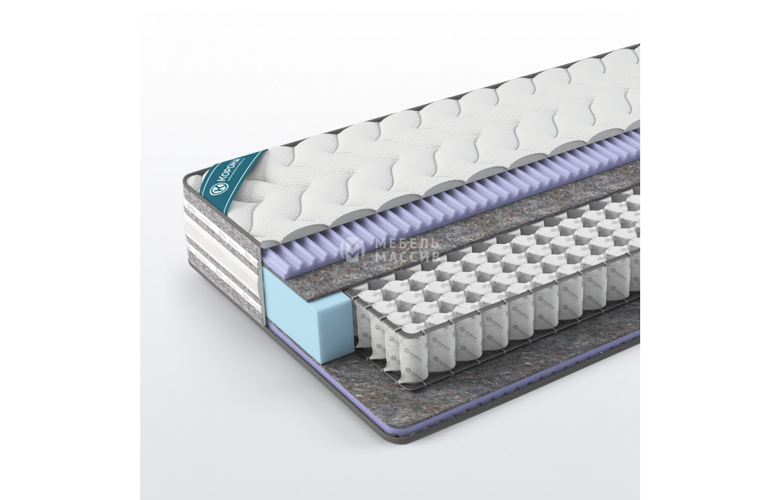 Модель на независимом блоке TFK 500 высотой 12 см повышенной упругости с металлической рамкой усиления по периметру блока. Данная рамка лучше держит форму матраса, борт изделия меньше подвержен деформации в процессе эксплуатации. Рамка усиления равномерно распределяет нагрузку на короб матраса и повышает срок службы изделия при повышенных нагрузках. В составе матраса ортопедическая массажная пена «Ormaform» - обладает хорошей несущей способностью и долговечностью, а особая форма обеспечивает дополнительный комфорт и способствует расслаблению мышц.
